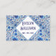 Cartão de visita azulejo mediterrânico azul-floral