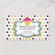 © Designs socialitas. Cupcake colorido em uma nuvem de texto com cartões de visitas de padaria em segundo plano poka-dot prontos para você personalizar para sua empresa. O estilo e a cor da fonte podem ser alterados pressionando o botão "Personalizar". Precisa de ajuda para personalizar? Por favor, não hesite em me contactar.