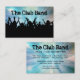 Este modelo de cartão de negócios de banda de música legal foi projetado com uma multidão de fãs celebrando e dançando em silhueta contra um fundo abstrato moderno e tem o nome de banda em um estilo legal de fonte que se destaca. Projetado para uma banda de rock and roll ou hip hop que toca a festa e o clube.