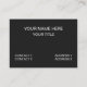 Cartão de visita de padrão de faixa de zebra branca e preta desenhada por Nisha Prabhu. Totalmente personalizável. Personalize com seus detalhes. Este cartão de visita de padrão de zebra preto-e-branco é uma forma elegante e na moda para criar uma impressão duradoura. A placa apresenta um padrão ousado de faixas de zebra em cores negras e brancas contrastantes, adicionando um toque de sofisticação e personalidade à sua imagem profissional. Com suas informações de contato exibidas de forma destacada, este cartão de visita de padrão de stripes de zebra preto e branco fará uma declaração e deixará uma impressão duradoura sobre clientes potenciais e parceiros comerciais.