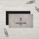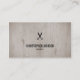 Modelo de cartão de negócios elegante personalizável com fundo de madeira e padrão de tesoura preta. Design elegante e simples, perfeito para salão de beleza, cabeleireiro, barbeiro, cabeleireiro.