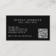 Simples cartão de visita preto masculino para barbeiros e barbearias que apresentam a moderna tipografia branca mínima e uma ilustração abstrato de uma bolacha branca e tesoura que formam as lapelas de uma jaqueta. No verso, adicione o endereço de URL do seu site para criar um código de QR digitalizável para que os seus clientes pesquisem mais informações.
