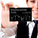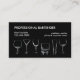 Um cartão de visita barman com imagem gráfica legal de vários objetos de vidro. Um poderoso, mas simples, cartão de visita para oportunidades de criação de redes e como um lembrete dos serviços num modelo que presta serviços independentes de barreira independentes que trabalham por conta própria.