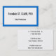 Este cartão de visita básico apresenta um nome, profissão e informações de contato que podem ser personalizadas. Ele também apresenta um contorno de cor azul na parte frontal. Cartões de visitas como estes podem ser utilizados por um profissional, como um freelancer ou um advogado.