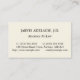 Este simples e mínimo design de cartão de visita apresenta um nome, profissão e contatos que podem ser personalizados. Cartões de visitas como estes podem ser usados por um profissional, como um advogado ou um consultor.