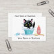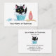 Este adorável cartão de visita apresenta um gato preto na banheira que tem um banho de bolhas com uma garrafa de sabão, pincel e rato de brinquedo. Perfeito para um negócio de aliciamento de animais de companhia ou para uso pessoal.