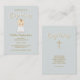 Este bebê bonito e doce é perfeito para o baptismo da sua criança. O design consiste em um bebê doce que veste um jumpsuit branco, babador branco com uma cruz do ouro. A cor do fundo é um azul de pó delicado. Verifique para fora os acessórios, os presentes, os favoritos para festas e os artigos de papelaria de harmonização.