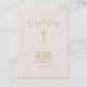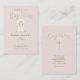 Este bebê bonito e doce é perfeito para o baptismo da sua criança. O design consiste em um bebê doce que veste um jumpsuit branco, um babador branco com uma cruz do ouro e uma capota branca com um arco cor-de-rosa. A cor do fundo é um rosa delicado. Verifique para fora os acessórios, os presentes, os favoritos para festas e os artigos de papelaria de harmonização.