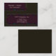 O marrom escuro e o azulejo roxo limitam o cartão de visita moderno corajoso. Personalize com seus próprios nome e informação na parte dianteira e na parte traseira. Ou adicione sua logotipo ou foto à parte traseira. Personalize mudando o tipo e as cores da pia batismal.