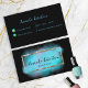 Design de cartão de visita personalizado moderno e feminino, com uma falso estrutura retangular em folha de ouro, com pinceladas de tinta de cor d'água turquesa sobre fundo preto. O texto é totalmente personalizável. Para alterá-la, use a opção Personalizar. Para obter mais alterações, como alterações na fonte, cor da fonte ou layout de texto, use a opção Editar design.