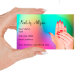 Cartões de visitas Manicuristas em lindas cores de fundo e mãos de senhoras com unhas feitas em um layout simples que você pode personalizar online para um profissional de tecnologia de pregos ou salões.