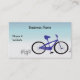 Um design excelente para alguém no negócio de bicicleta. Uma bicicleta com assento e estrutura azuis, pedais pretos e pneus pretos. Personalize com todas as suas informações conforme desejado.