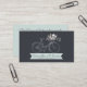 Crie uma primeira na moda para a sua empresa com esses cartões de visitas modernos. A frente do cartão é impressa com um carvão profundo e tem um desenho de cinza pálido de uma bicicleta vintage, completa com uma cesta frontal cheia de flores em tons suaves de rosa, amarelo e azul de ovo de robin. Abaixo da bicicleta está um estandarte em azul de ovo do mesmo pino, no qual você pode personalizar com seu nome ou texto. O verso é impresso na mesma cor azul e tem espaço de sobra para mais informações, basta personalizar usando modelos fáceis e fornecidos. Também está incluída uma imagem de um pequeno spray de flores, que você pode mover para onde quiser dentro do design, ou simplesmente apagar se você não quiser que este elemento faça parte do seu design. Moderno e em tendência, com um olhar novo!