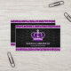 Cartão De Visita Black Damask Faux Purple Glitter Coroa Real
