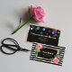 Cartão De Visita Black & White Stripes Rosas Rosa Luzes Rosa Floris