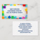 Cartões de visitas coloridos de terapeuta ocupacional ou psicólogo infantil para alguém em OT ou psicologia que trabalha com crianças aconselhando fazendo terapia de brincadeira com brinquedos. Estes adoráveis cartões de visitas infantis-terapeuta apresentam uma fotografia de blocos construtores. Passe estes cartões de conselheiro pediátrico fofos para qualquer um com uma criança necessitada. Perfeito para terapia ocupacional ou outras especialidades pediátricas.