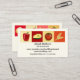 Cartão de visita moderno com imagens de diferentes comidas em fundo colorido. Bonita para um blogueiro comida, cidadão ou outros profissionais da indústria da comida.