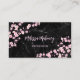 A cereja rosa bonito floresce num fundo de mármore preto. Seu nome em um guião manuscrito elegante. Perfeito para maquiadores, spa, paisagismo, planejadores de casamento, planejadores de eventos, cosmetólogos, salão de beleza e muito mais.