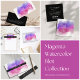 Os cartões de visitas de aquarela apresentam seu nome ou nome de empresa sobrepostos em branco a preto, em uma ilustração florescente de tinta em tons brilhantes e coloridos de cor rosa, magenta e violeta fuchsia. Adicione as informações de contato do cheio ao fundo em branco a preto.