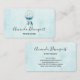 Cartões de visitas com uma catador de água bonito. Cor azul, turquesa e creme. Decorados com penas, miçangas e flores.