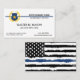 Este cartão de visita de Sinalizador da Polícia de Linha Azul dos EUA é uma forma respeitosa e profissional de representar seu serviço, suporte ou conexão com a polícia. Apresentando uma bandeira americana a preto-e-branco ousada com uma linha azul marcante atravessando o centro, o design simboliza solidariedade, honra e memória para os oficiais