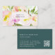 Os cartões de visitas florais de jardim apresentam um fundo de flores de rosa e pedras em tons pastéis de cor d'água, cor-de-rosa-pincel e primavera, com seu nome ou nome comercial sobreposto no centro. Adicione suas informações de contato ao verso em branco sobre jasper verde de tom de joia rica e personalize o código QR para facilitar a conexão dos clientes.