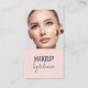 Cartão De Visita Blush Pink Modern Script Font QR Code Photo Makeup