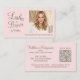 Cartão De Visita Blush Pink Script Photo QR Code Lashes and Brows