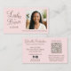 Cartão De Visita Blush Pink Script Photo QR Code Lashes and Brows
