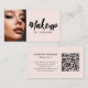 Cartão De Visita Blush Pink Script QR Code Photo Makeup
