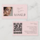 Cartão De Visita Blush Pink Script Social Icon QR Code Photo Makeup