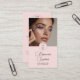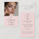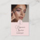 Cartão de visita vertical com foto de maquiagem minimalista em rosa discreto e branco e preto.