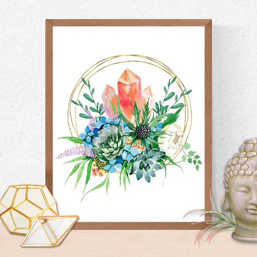 Boho Bohemian Succulent Buquê Watercolor Modern Chic design com círculo dourado e Cristais Citrinos. Perfeito para os aquecedores de energia, Reiki, Terapêutica de Massagem, Psicologia, Leitores de Cartão, Indústria Spa. Obrigado pelas suas encomendas de clientes. Texto pronto para suas informações. Altere as cores de fundo e os estilos de texto para ajustado das suas necessidades.