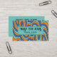 Abstrato púrpura cor-de-laranja azul-esverdeada, estilo Boho 70, cartão de visita com tipografia florescida retrô. Uma vibração do estilo 60 e 70. Adicione seu nome, empresa e cidade.