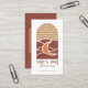 O nascer de sol laranja, estilo Boho 70, e cartão de visita de montanhas com tipografia florescida retrorada. Uma vibração do estilo 60 e 70. Adicione seu nome, empresa e cidade. A parte traseira da placa é cor de laranja estável com tipo branco.