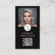 Wow your customers with this business card featuring an elegant typography design in bold black and blush pink together with your logo, plus a photo of your choosing and your social media handles together with a QR code for your bookings or site. On the back personalize all your contact information.