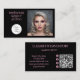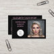 Wow your customers with this business card featuring an elegant typography design in bold black and blush pink together with your logo, plus a photo of your choosing. On the back personalize all your contact information and showcase your social media handles together with a QR code for your bookings or site.