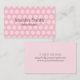 Crie os seus próprios cartões de visitas personalizados alterando a face, o estilo, o tamanho e a cor da fonte. Personalize este design alterando a cor de fundo rosa-claro atrás da imagem de bolinhas semitransparente. Este é um padrão personalizável do azulejo bolinhas. Crie seus cartões de visitas bonito, mas simples para ela. Cartões de visitas.