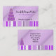 Cartão de visita para decoração de bolos, panificação, padaria, casa... bolo em camadas roxas em uma faixa diagonal macia. Uma fronteira de listras roxas modernas acentua a base. Personalize com suas informações conforme desejado.