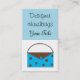 Um cartão divertido e na moda perfeito para uma variedade de negócios e ocupações. Uma bolsa de bolinhas bonita sobre um fundo azul bonito. Personalize com todas as suas informações conforme desejado.