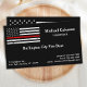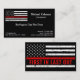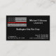 Cartões de visitas de bombeiro fino da linha vermelha - design de bandeira americana em cores de bandeira de bombeiro, design angustiado. Perfeito para todos os bombeiros e bombeiros. Frente - Personalize com nome, departamento, endereço e informações de contato. Voltar... "primeiro em último lugar". COPYRIGHT © 2020 Judy Burrows, Black Dog Art - Todos Os Direitos Reservados. Bombeiro Thin Red Line Cartão de visita