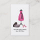 Cartão com ilustração da forma de um vestido de cocktail em um manequim do formulário do vestido da costureira e em uns calçados de harmonização do salto alto. Este é um cartão frente e verso, com imagens na parte dianteira e na parte traseira para um impacto visual maior.