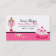 Cartão de visita bonito da padaria feito com trabalhos de arte gráficos de um cor-de-rosa lunático, cupcakes verdes, e brancos, pote de doces, e doces envolvidos, contra um fundo cor-de-rosa e branco. O texto no preto e no rosa é inteiramente customizável serir suas necessidades do negócio. Personalize o texto para seu negócio da padaria. Excelente para negócios de restauração do bufete dos doces.