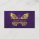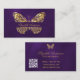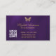 Cartão De Visita Borboleta dourado roxo Código QR elegante script