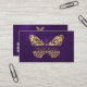 Um fundo roxo elegante decorado com uma borboleta dourada falsa. A cor roxa é irregular. Personalize e adicione seu nome à frente. Anterior: Modelos para o seu nome, título, número de telefone, correio e endereço do Web site, QR-code. Perfeito para mulheres empresárias, consultores, donas de negócios.