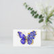 Borboleta de flores cinza, azul, safira, espumante com asa decorada com flores preciosos azuis com folhas de ouro sobre fundo branco.