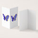 Borboleta de flores cinza, azul, safira, espumante com asa decorada com flores preciosos azuis com folhas de ouro sobre fundo branco.