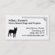 Um simples design preto e branco com uma silhueta de um Boston Terrier com uma borda de padrão geométrico em um canto.