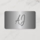 Tendy big monograma faux metal prateado escovado, cinza e cartão de visita branco com script de tipografia totalmente editável. +++++++++++++ Adequado para designers de interiores, pintores, decoradores de casas, artistas profissionais, maquiadores, escritores, blogueiros ou quaisquer outras atividades pessoais de marca. ++++++++++ Observe que a inscrição de script e a cor do marinho de fundo no verso são editáveis após a seleção da opção PERSONALIZAR MAIS.