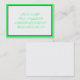 Cartão de visita elegante em branco com um quadro preto e verde. Clique no botão personalizar para alterar a posição do texto, bem como a cor e a fonte das letras.